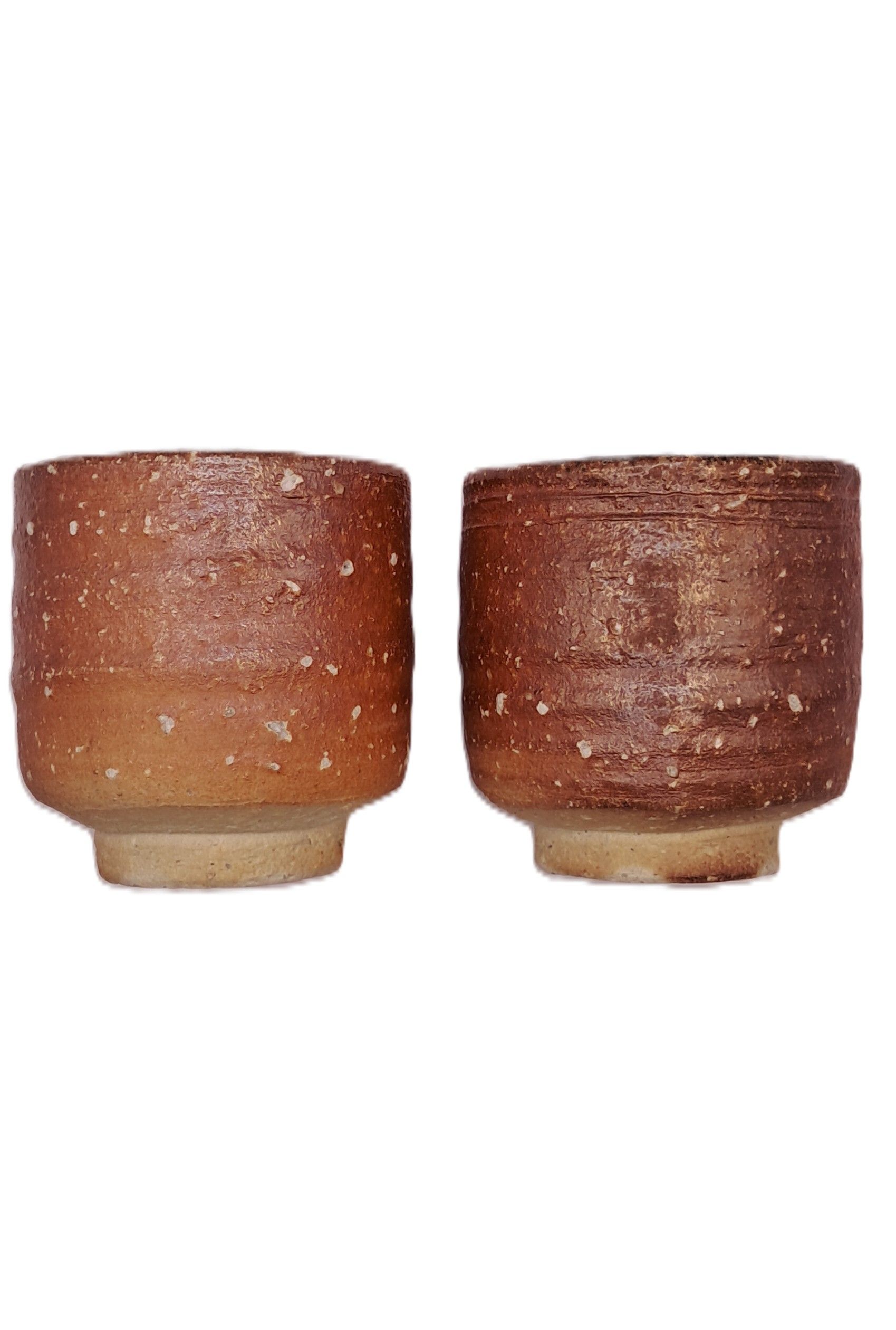 Typische modernen Shigaraki-Keramik. Zwei Becher signiert im Holzkasten.